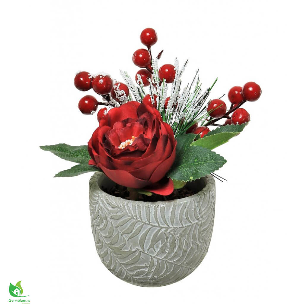 Jólaskreyting rauð í gráum potti 18cm